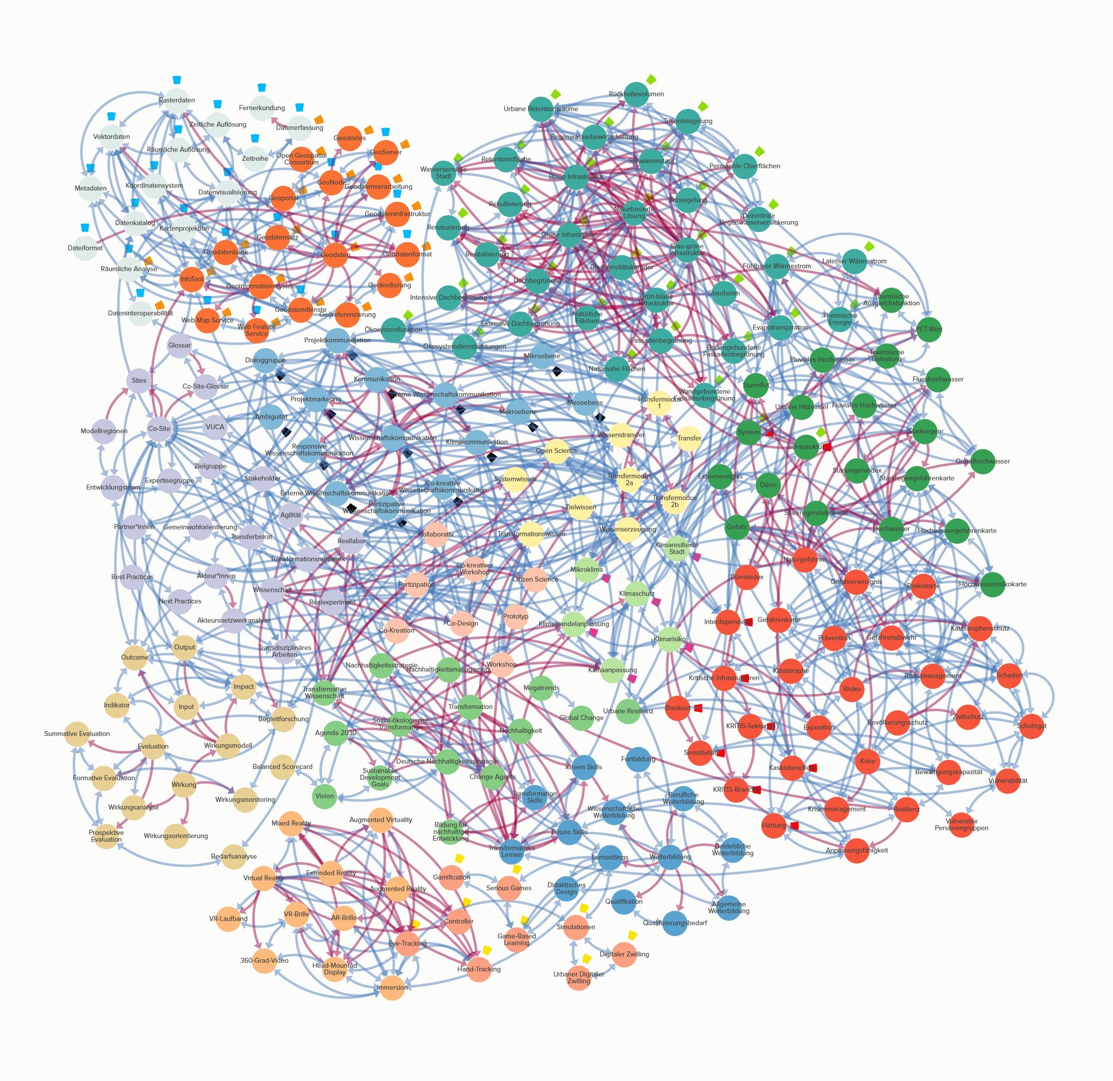 Verwandt: Blau-grüne Infrastruktur, Klimaanpassung, Renaturierung, Revitalisierung, Rekultivierung, Nachhaltigkeit, Ökosystemfunktion, Klimawandelanpassung, Blaue Infrastruktur, Grün-blaue Infrastruktur, Grüne Infrastruktur, Naturbasierte Lösung, Naturnahe Flächen